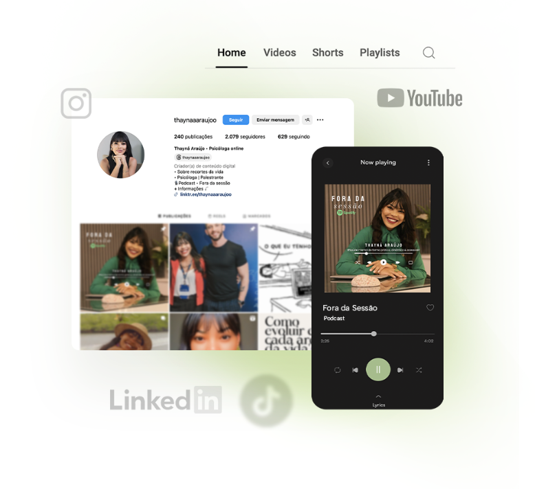 Em todas essas plataformas, busco espalhar saúde mental e uma psicologia prática que você pode integrar facilmente ao seu dia a dia, e é exercitando o que se ouve que mudamos como agimos e o que sentimos.